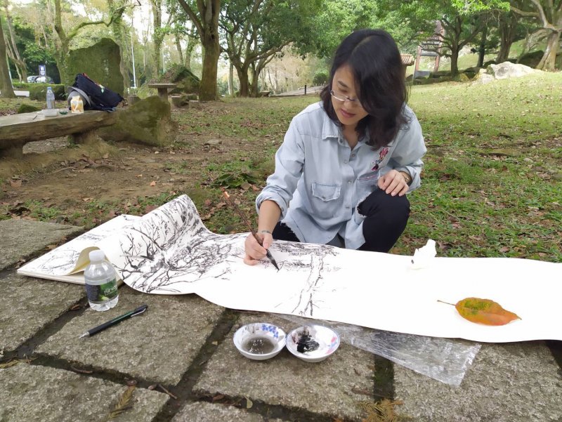 | 色感、色溫與色彩光點~ 如何表現春天花卉顏色的漸層與透明感 | 用放大鏡來觀察蘆洲街頭巷弄裡找尋可愛的小花小草,邀請學員一起互動學習,從巷弄特色的景點,以微觀的角度來觀察身邊物體的造型及光影變化,用剪影的概念,透過水墨特性及複合媒材如何,應用點、線、面的概念來構圖及透過色塊組合和律動來傳達花朵飽和顏色之美。 |